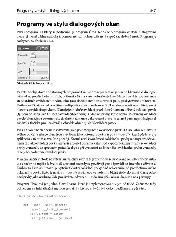 Zkušený autor vás provede Pythonem od prvních jednoduchých programů až po komplexní projekty, které pracují se sítí, databázemi nebo ve více vláknech. Pro rychlé osvojení nových informací jsou v knize odkazy na podobná témata, která souvisejí s aktuálně probíranou látkou. Na konci každé kapitoly najdete příklady, krátké shrnutí a cvičení, které pomůže upevnit nově nabyté poznatky. Publikace vás mimo jiné naučí, jak: