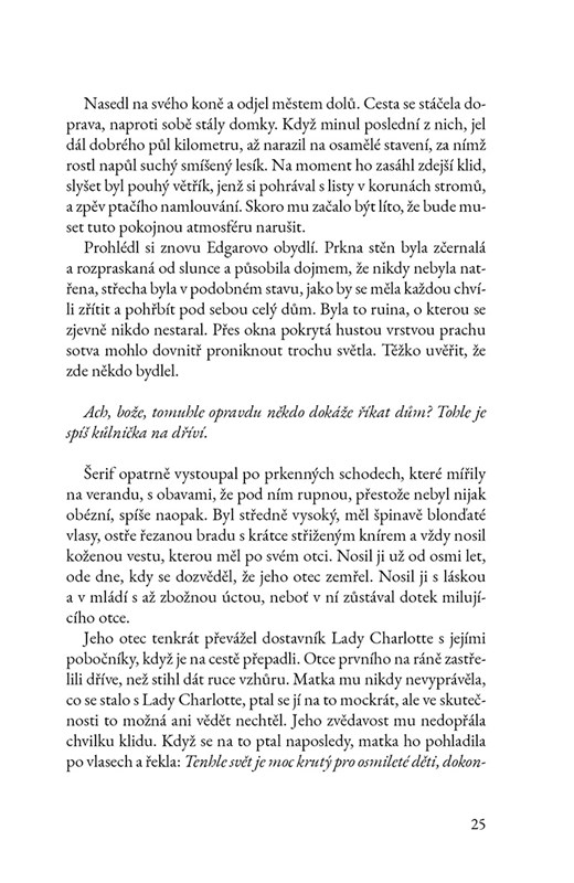 Román o starém pánovi, jenž se doslova vžívá do knih, které čte. A čtenář se s ním ocitá nejen na Divokém západě.
