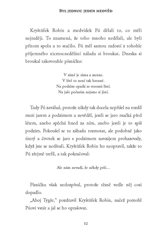Jak se Kryštůfek Robin seznámil se svým milovaným medvědem? A jaké to bylo, než se Pú a jeho přátelé přestěhovali do Stokorcového lesa? O tom vypráví tato půvabná sbírka nových příběhů, napsaná ve stylu A. A. Milna. Zavede čtenáře do doby, kdy seděl Pú v hračkářství a čekal, až ho někdo Kryštůfku Robinovi koupí. Pak už ale mohla začít ta nejúžasnější dobrodružství při stavbě bunkrů, hledání pokladů, vymýšlení legračních písniček a mlsání medu.
