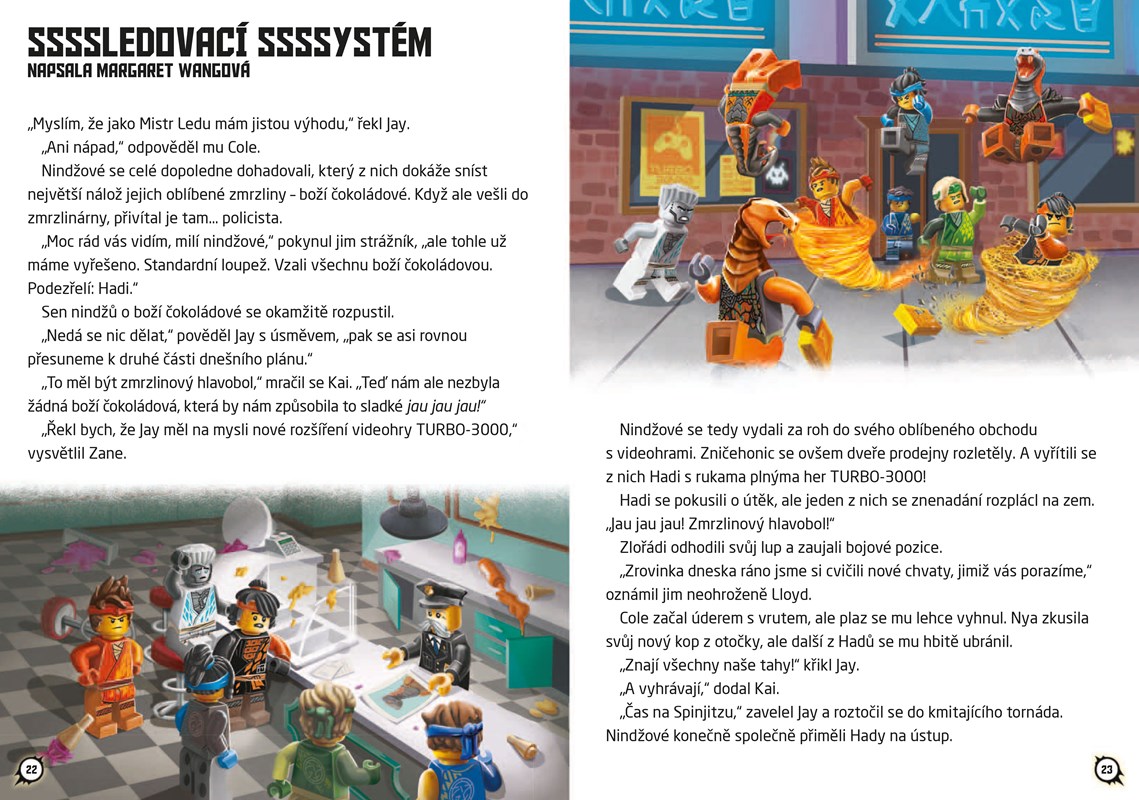 Hadí kmeny jsou zpět! Tentokrát se ale vyzbrojily hustými technologiemi. Sestav si minifi gurku hadího bojovníka s jeho dronem a pak sehraj různé scénky, jak se nindžové utkali s tímto novým protivníkem. Přečti si ssssuprový příběh o nindžovském dni. Zažij útok Skulkina i legrační příhodu s hady a auťákem, o níž si přečteš v komiksu. A především pomoz nindžům porazit nové i staré zlouny ve sssskvělých aktivitách. Ninja-go!