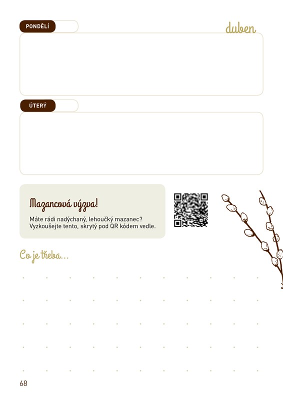 Pečení potěší duši i chuťové buňky v každém čase – tento diář je tím nejlepším důkazem. Nestane se pouhým průvodcem vašeho běžného života, Iva Trhoňová ho pojala čistě v pekařském stylu: najdete v něm nejen ověřené recepty na sladké i slané pečivo, ale také tipy, triky, zajímavosti nebo třeba pekařské výzvy. Tak nečekejte a pusťte se do pečení! Každý den může být svátkem plným lahodných chutí a vůní.
