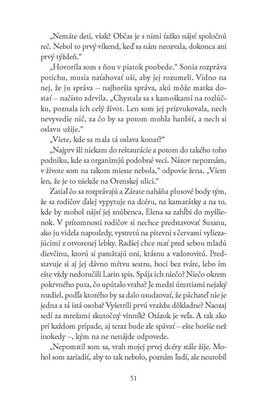 Susana Macaya, napoly Cigánka a napoly gadžovka, mala len niekoľko dní pred svadbou, keď sa našlo jej brutálne umučené telo. Pred siedmimi rokmi postihol rovnaký osud aj jej sestru Laru, odsúdený vrah však sedí vo väzení. Existujú preto len dve možnosti: buď má nasledovníka, alebo je muž odsúdený za Larinu vraždu nevinný.