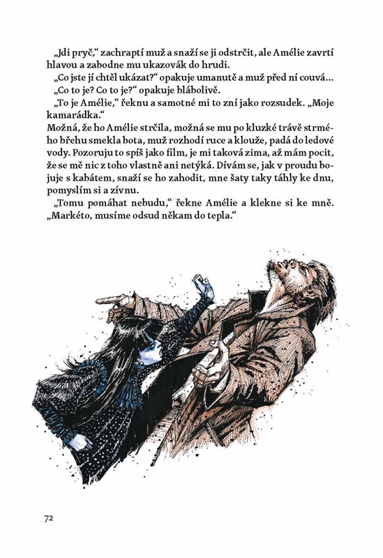 Amélii je dvanáct… a to už dlouhých 122 let. Má černé vlasy, nosí černé šaty, dokonce i kolo má černé. Její ruce jsou chladné a z temného starého domu, kde žije se svou maminkou, vychází jen v noci. Nemá žádné kamarádky, je prostě jiná a z toho všeho čím dál tím smutnější. Už 122 let. Až nečekané setkání s Markétou ji opět rozveselí, najednou si má s kým hrát, s kým se smát a povídat si. Markéta také řeší své trable – kamarádi ji nechápou a maminka má taktak peníze na to, aby se uživily. Své přátelství drží obě dívky v tajnosti až do chvíle, kdy Amélie zachrání Markétu před utonutím. Pak se jim oběma úplně změní život.