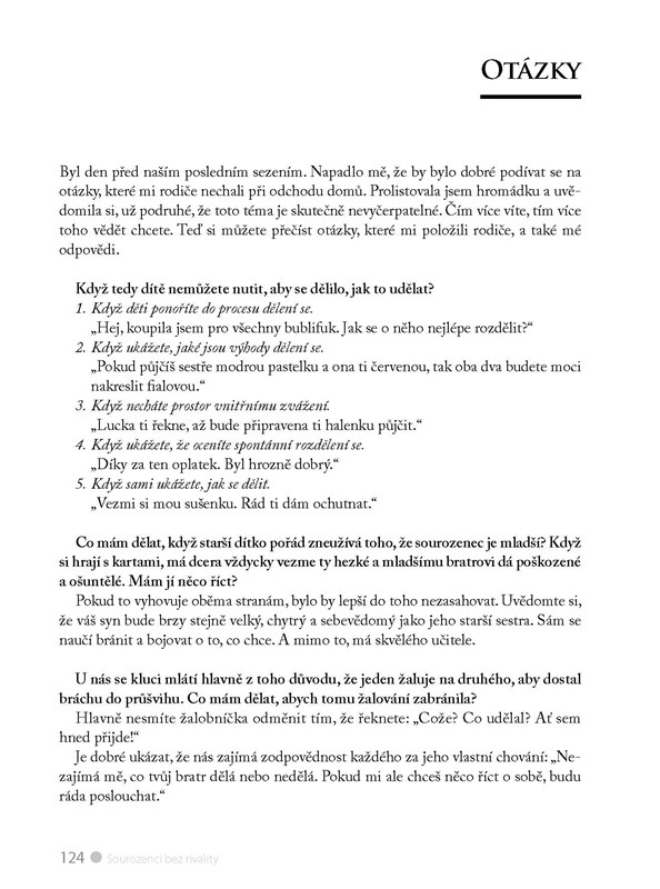 Zažíváte doma sourozenecké třenice nebo žárlivé scény? Tato kniha vám pomůže, abyste své děti spravedlivě vychovávali a zabránili jejich věčným sporům, ale současně z nich vychovali samostatné a sebevědomé osobnosti.