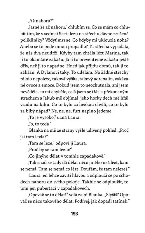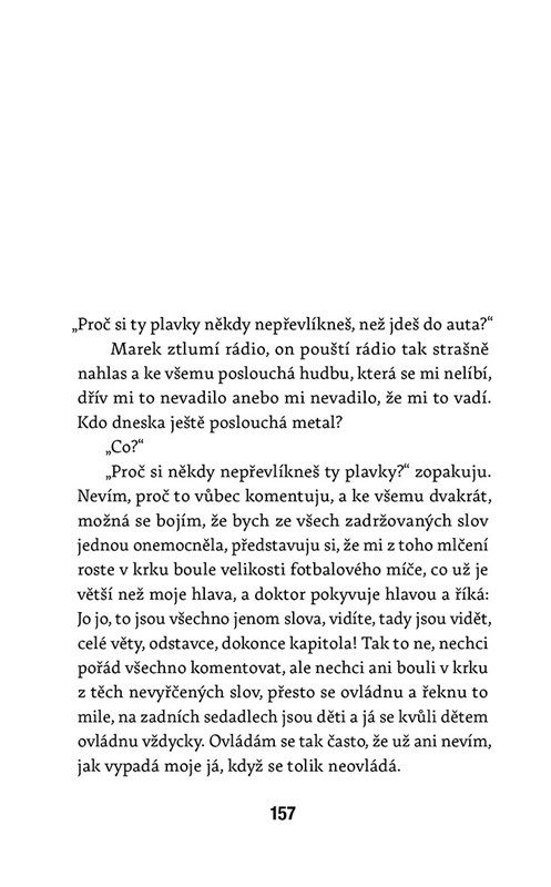 Naštěstí jsem dopředu nečetla žádné recenze a názory na knížku. Jen jsem někde zaslechla, že je tam celkem dost vulgarit. Ano, jsou tam. Ale prostě tam patří. Vykreslují jednotlivé postavy. Líbí se mi i nápad s přehozenými kapitolami, nutí vás to přemýšlet a občas teda musíte listovat. Hlavní hrdinka se rozejde s manželem Markem, který je tak trochu (vlastně tak trochu dost) tyran. Takový možná nenápadný. A ona se rozhodne ten vztah opustit poté, co si najde milence. Jakuba. Mladšího než je ona. Ale upřímně? Nemyslím si, že si nějak pomohla. Jakub je pro ni okouzlující, já myslím, že trochu blbec. Překvapivý závěr trochu vyrazí dech a já říkám, že Radka Třeštíková mě zase nezklamala!
