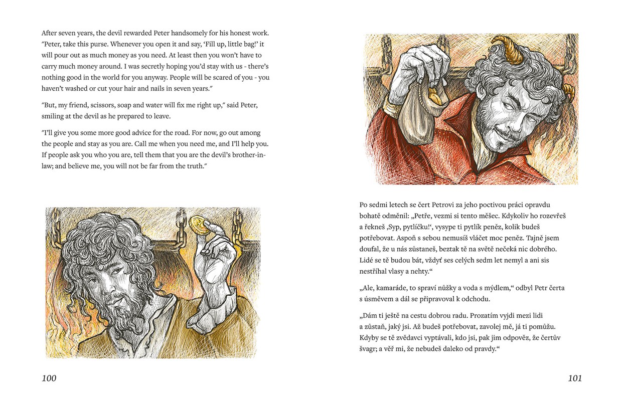 Klasické české pohádky v dvojjazyčné úpravě, příběhy, které se po generace předávají dalším pokolením k vám nyní přicházejí v bohatě ilustrované knize, aby potěšily děti i dospělé. Najdeme zde pohádky na motivy Boženy Němcové, Karla Jaromíra Erbena a Václava Říhy. Nechybí zde Pyšná princezna, Šípková Růženka, Čertův švagr či například Rozum a Štěstí. Zrcadlově uspořádaný text umožňuje kontrolu porozumění.