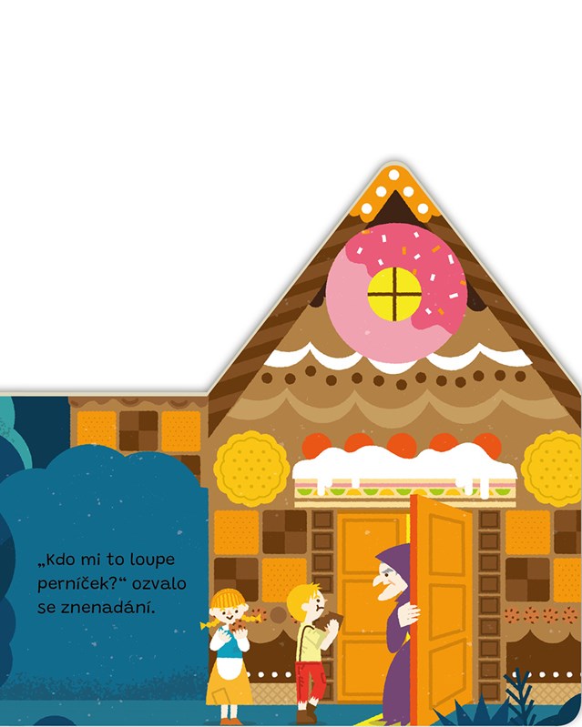 Když Jeníček a Mařenka v lese natrefí na chaloupku celou z perníku, ještě netuší, že je čeká napínavé dobrodružství… že už tu pohádku znáte? Určitě ale ne v tomto novém kabátku! Na první pohled knížka vypadá jako jednoduché kulisy známého příběhu, ale s každým otočením stránky je pohádka na dobrou noc zábavnější a zábavnější.