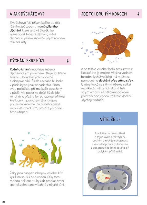 Zajímalo vás někdy, jak vlastně fungují těla zvířat? Jak to, že ptáci umí létat, a jak se rybám dýchá pod vodou? Jak a proč se liší trávení býložravců a masožravců nebo jakým způsobem dokážou zvířata využívat své smysly? Prozkoumávejte úžasnou proměnlivost zvířecí říše a porovnávejte, jak se stavba těla jednotlivých živočichů liší. Fungování každé soustavy můžete navíc srovnat i s tím, jak je to zařízené u člověka.