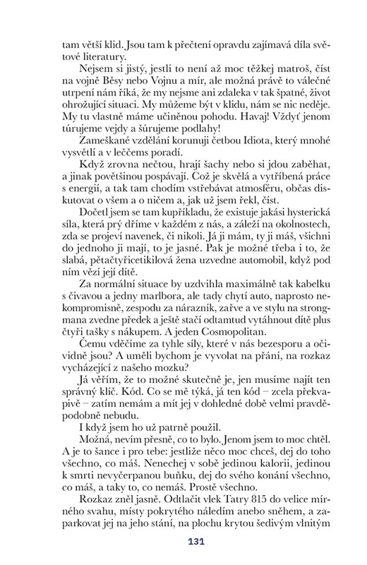 Otec nikde, matka k ničemu. Věci, které si nepřeješ, ale jsou ti souzeny, a tak nezbývá, než se s nimi konečně vypořádat, a osobnostně růst. Poznat a pochopit, najít vnitřní sílu a žít bez nenávisti. Silný a klidný. Brát život, tak, jak přichází. S humorem a nadhledem. Protože jinak to nejde.