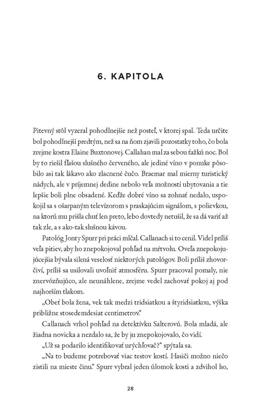 Rafinovaná zápletka, ktorá vás chytí od prvej stránky, naozaj odporný zločinec a sympatická dvojica vyšetrovateľov – „krásavec Callanac“ a svojská, tvrdohlavá Ava Turnerová, to sú prísady, vďaka ktorým si túto knihu vychutná každý fanúšik detektívneho žánru.