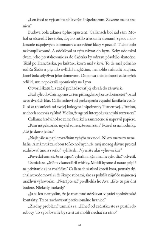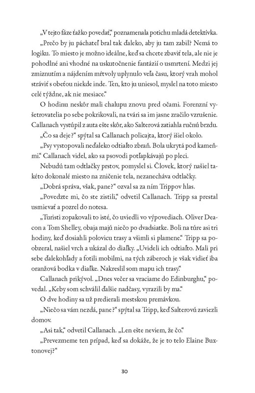 Inšpektor Callanach zanechal sľubnú kariéru v Interpole a v Edinburghu začína od nuly. Obstojí pred novými kolegami a podarí sa mu nájsť vraha, ktorý za sebou veľmi starostlivo zahladzuje všetky stopy?