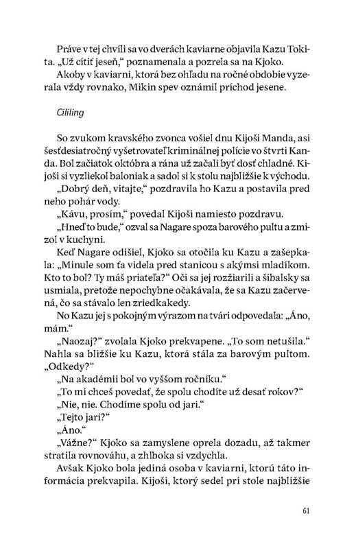 Má to však háčik. Môžete sa stretnúť iba s ľuďmi, ktorí už kaviareň niekedy v minulosti navštívili. Nech urobíte čokoľvek, prítomnosť tým nezmeníte. Pri pobyte v minulosti sa z miesta nesmiete vzdialiť. Váš čas v minulosti sa začína naliatím kávy a končí sa, keď káva vychladne. A tam sa čudesné pravidlá ešte nekončia. Napriek tomu sa nájdu ľudia, ktorí, keď sa o tejto možnosti dopočujú, rozhodnú sa využiť ju. A čo vy? Stáli by ste o návrat do minulosti aj za takých podmienok?