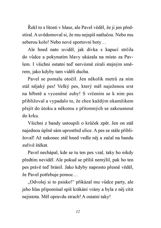 Když si Pavel jednoho dne vyrazil sám na kole, počíhala si na něj banda výrostků. Chtěli po něm peníze a Pavlovi bylo jasné, že proti nim nemá šanci. Ale v tom se po jeho boku objevil zdivočelý pes a přiměl těch pět chuligánů k útěku. Od té chvíle se už od chlapce nevzdálil.