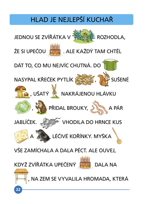 kombinace textů a obrázků, doplňování slov za obrázky