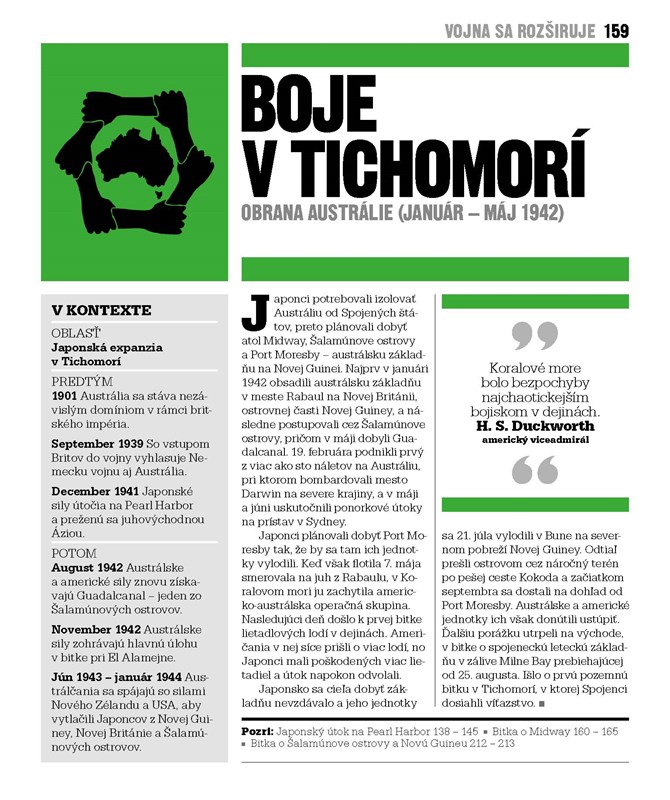 Druhá svetová vojna bola najrozsiahlejší a po všetkých stránkach najdrahší ozbrojený konflikt v dejinách. Táto kniha zrozumiteľne približuje historické udalosti tohto obdobia z politického, taktického aj technického hľadiska. Ponúka výstižné vysvetlenia a dôvtipné ilustrácie či mapy najdôležitejších udalostí a míľnikov svetového vojenského konfliktu.