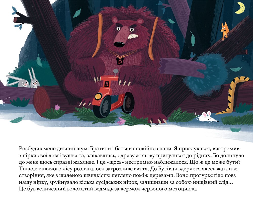 Ukrajinská výtvarnice Alyona Potyomkina dětem namalovala napínavý příběh, kdy do jarního lesa Bučiska vtrhne zlý medvěd Dimir.