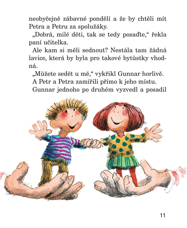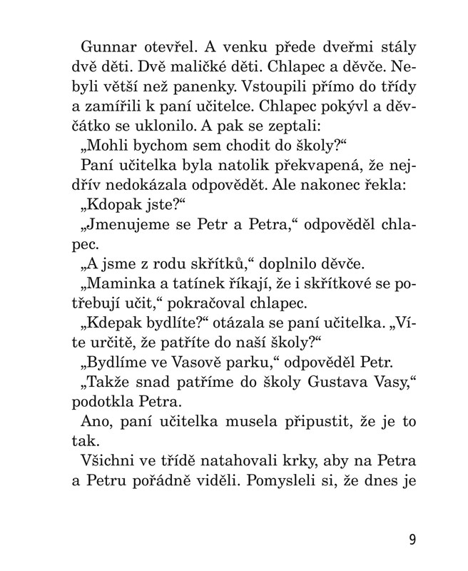 V jedné stockholmské škole se před několika lety stalo něco opravdu pozoruhodného. V první třídě měli právě čtení a vtom se ozvalo zaklepání na dveře. A když se dveře otevřely, stály za nimi dvě maličké děti, ne větší než panenky. Petra a Petra, tak se skřítkové jmenovali, poprosili paní učitelku, zda by nemohli taky chodit do školy. Ale co bylo dál?