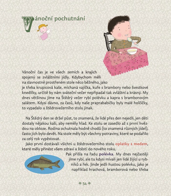 V dnešní záplavě Santa Clausů, vánočních skřítků a sobů české děti pomalu, ale jistě zapomínají na Ježíška. Právě proto vznikla tato kniha vyprávějící ve 12 kapitolách o vánočních zvycích, které narození Jezulátka provázejí. Nejen děti, ale i rodiče se dozvědí jistě spoustu zajímavostí, o nichž dosud netušili, o stavění betlému, zdobení stromečku, vánočních písních, ale i českých a evropských tradicích. Naučí se vyrábět jednoduché vánoční ozdoby a upéct to nejvoňavější a nejsladší cukroví na světě. Součástí knihy jsou i povídky renomovaných českých autorů a „Galerie Ježíšků“ – obrázky známých i neznámých ilustrátorů představující Ježíška při nadělování dárků. Knížka je doprovázena bohatými ilustracemi Andrey Tachezy.