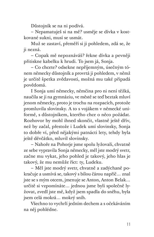 Mladá a pohledná Sonja potkává náhodně na ulici starého rodinného známého, který ji kdysi zachránil, když zapadla při lyžování do sněhu. Tehdy mu říkala Ludek, nyní je z něj ale přísný německý důstojník SS Ludwig Mischkolnig, který s ní jedná odměřeně. Sonja má ovšem na srdci něco, s čím by jí mohl pomoci… Co všechno bude za tu službu ochotná obětovat?
