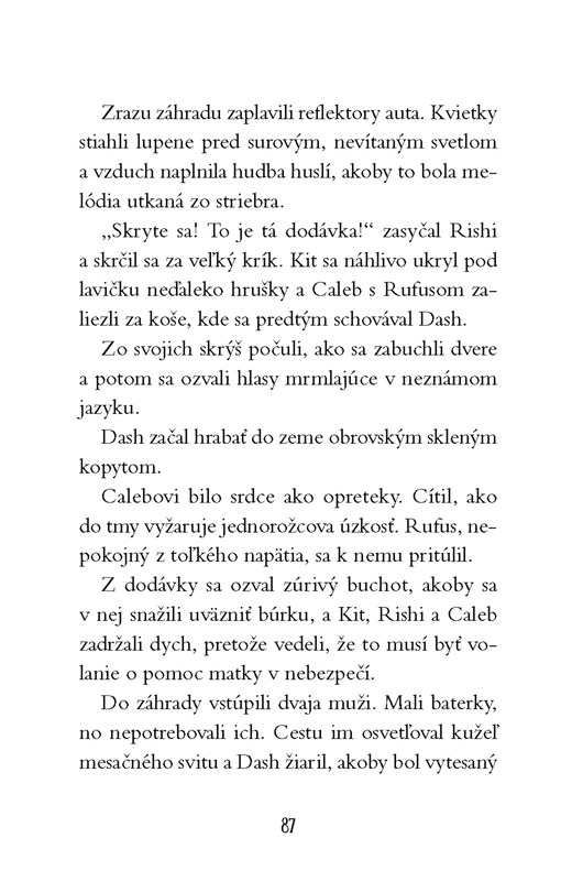 Keď uvidia jasne modrú hrivu, ktorá sa preháňa ulicami južného Londýna, tušia, že niečo nie je v poriadku. Jednorožec je prenasledovaný! A tak sa kamaráti vydávajú na svoje najvzrušujúcejšie dobrodružstvo. Čoskoro však zistia, že nie všetci pátrači sú dobrí...