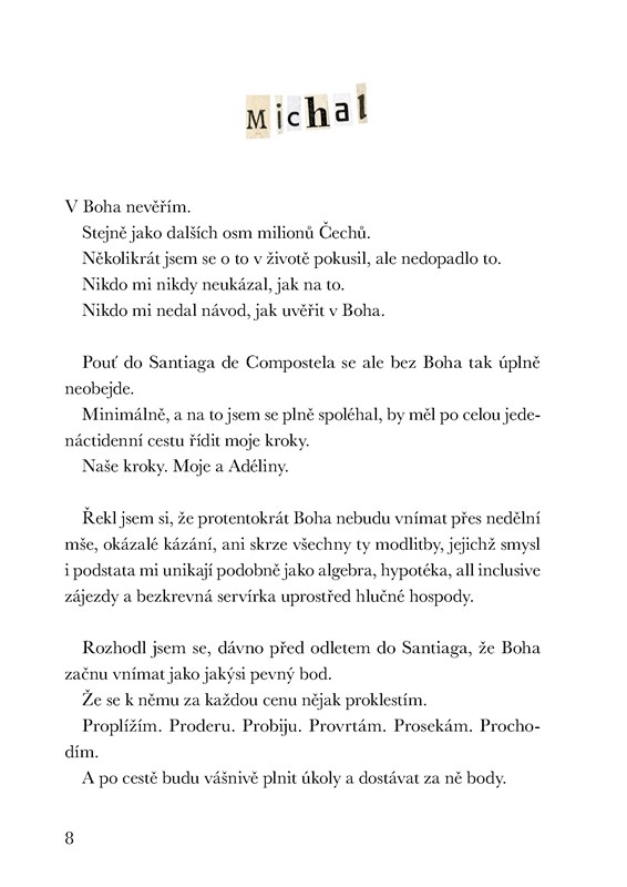Když se potkají dva, kteří se k sobě hodí, vznikne z toho láska. Ale co když se potkají až po čtyřicítce, těžkých vztazích a navíc v ne úplně vhodnou chvíli? Adéla Elbel se vydává se svým partnerem Michalem Rožkem na pouť do Santiaga. Oba věří, že se cestou ukáže, jestli jejich láska nenese na zádech břemena minulosti a má dost pevné kořeny. Co řeší na pouti muž a co žena? Jak rozdílní jsme? A kde čeká naděje, že můžeme vždycky začít znovu?