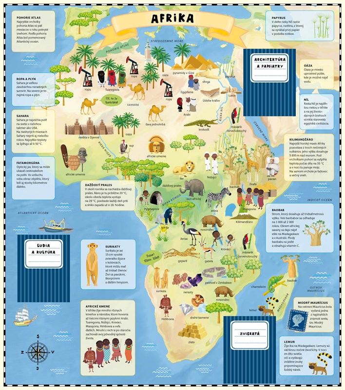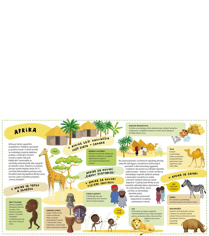 Atlas sveta pre deti je určený všetkým malým cestovateľom, ktorí sa chcú dozvedieť množstvo informácií o planéte, na ktorej žijú. Každému svetadielu alebo kontinentu je venovaná samostatná kapitola a predovšetkým veľká rozkladacia mapa, na ktorej je pomocou farebných ilustrácií prehľadne vyobrazené to, čo je pre daný svetadiel alebo kontinent najtypickejšie. Na čitateľov tu čaká veľké množstvo informácií o obyvateľoch jednotlivých častí sveta, o zvieratách, ktoré tu žijú, o rastlinách, ktoré tu rastú, ale aj o miestnej architektúre, ľudových tradíciách a kultúre vôbec.