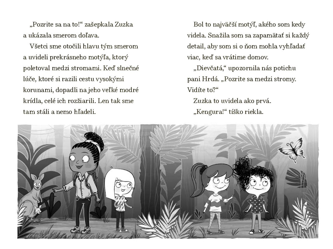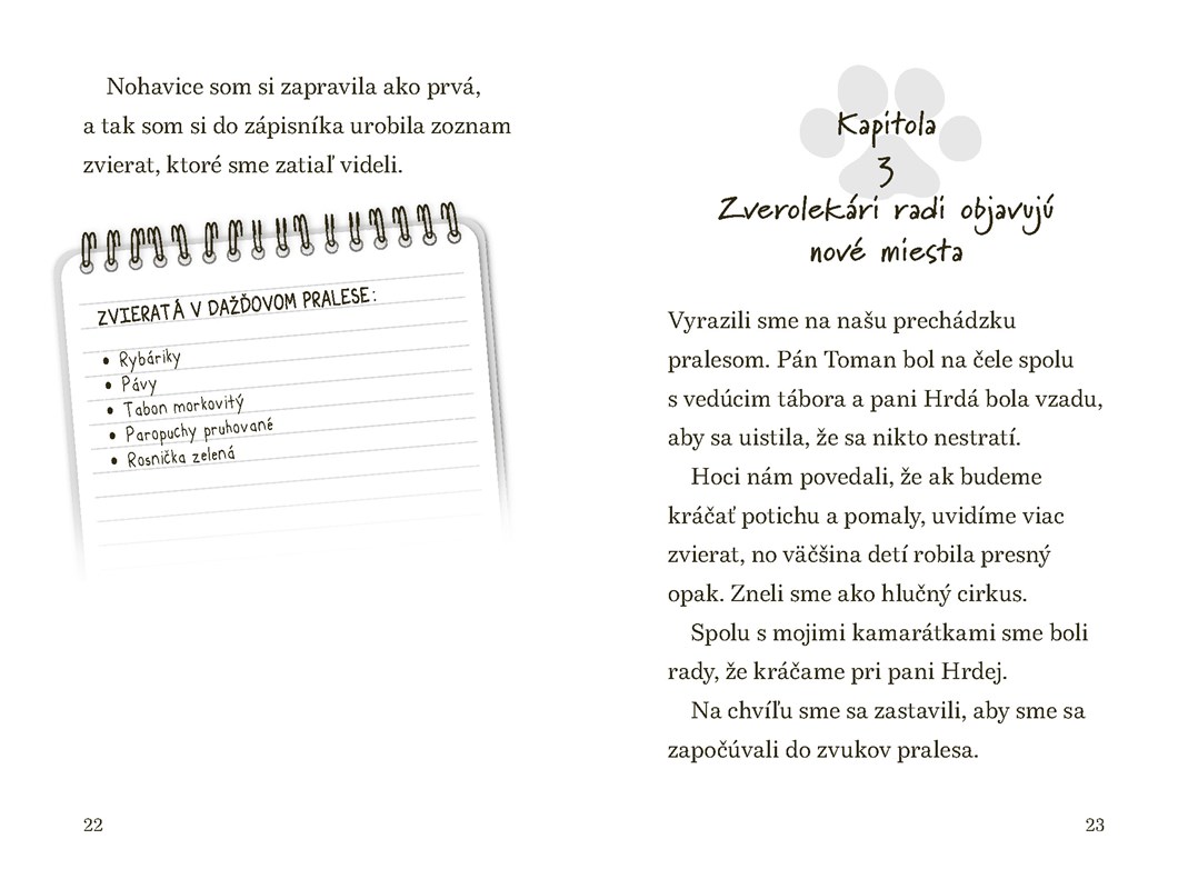 Zo školy vyrážame do tábora v dažďovom pralese. So Zuzkou a s Miškou sa tešíme na rôzne zvieratá, ktoré by sme mohli na našich potulkách vidieť. Zuzka sa však desí, že nájdeme nejaké strašidelné plazy. Ak by náhodou zvieratká potrebovali pomoc, so svojím zverolekárskym kufríkom som pripravená.