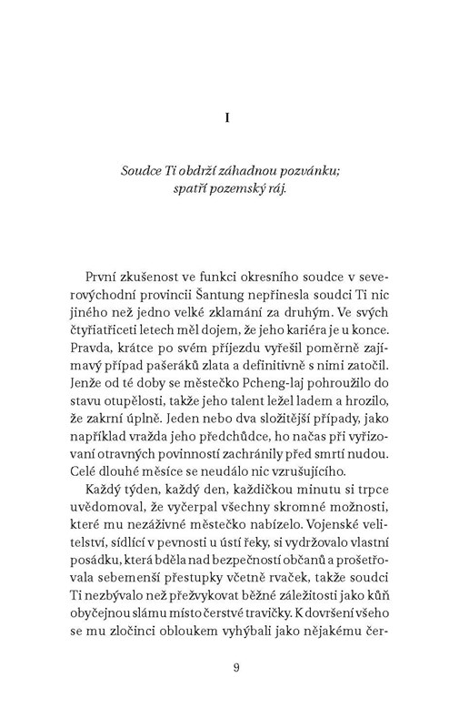 Soudce Ti je povolán do hlavního města Tchangů, aby zde podal zprávu o svém posledním případu. Sotva...