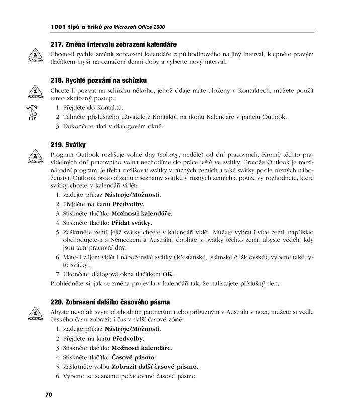 Všem, kdo si při práci s programy Word, Excel, Outlook či Access všimli, že nevyužívají plně jejich možností nebo některé činnosti provádějí neobratně a nemají čas studovat dlouhé pasáže tlustých knih, vycházíme vstříc sbírkou více než tisícovky nejužitečnějších zkratek, fint, prospěšných možností a zajímavých funkcí v Microsoft Office 2000. Hlavním cílem předložených tipů je ušetřit uživatelům námahu a čas. Mnohé jim přinesou rozšíření dovedností, jiné směřují k vytváření hezčích, profesionálněji vypadajících dokumentů a řada triků je řešením obvyklých problémů.