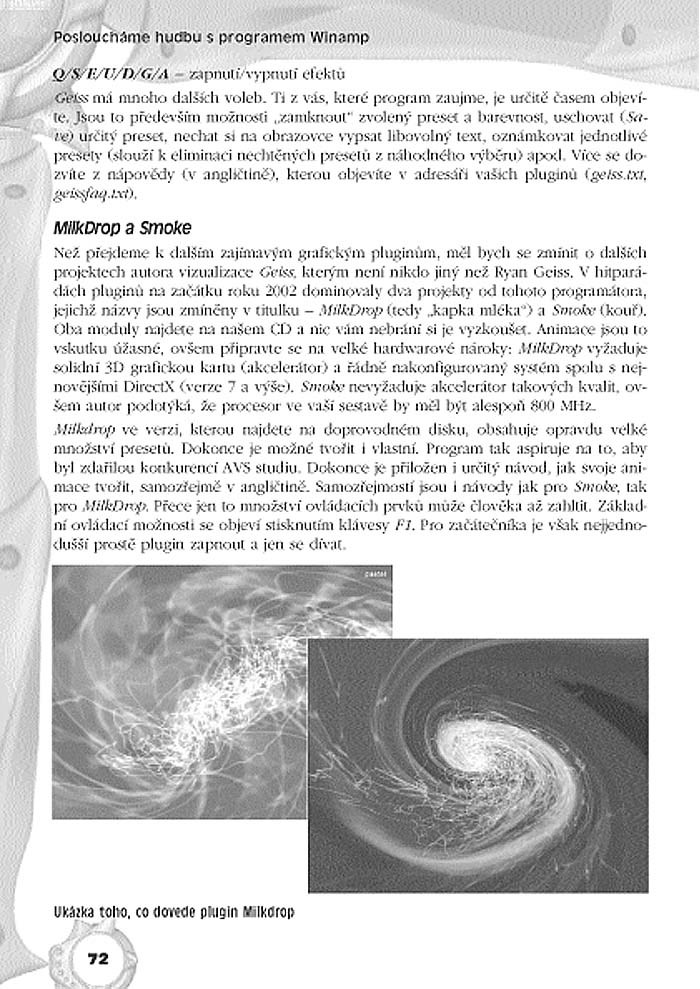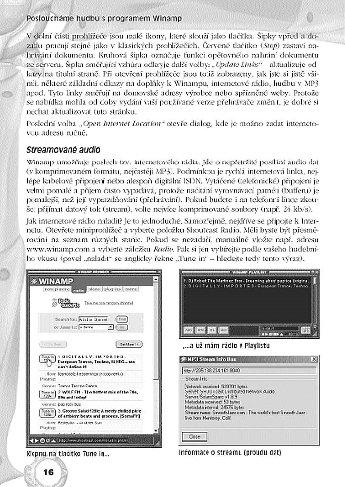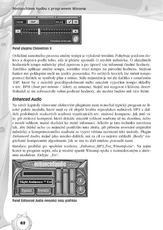 Dnes snad jen nováček ve světě počítačů neví, co je a k čemu je Winamp. Proč kniha k tak jednoduchému programu? Co může být obtížného na přehrávání skladeb a tvorbě playlistů? Pokud od Winampu nečekáte více, než jednoduché funkce typu spuštění skladby, zastavení jejího přehrávání, přeskočení skladby a několik dalších, vystačíte si se znalostmi z podobných zařízení z našeho fyzického světa, ať již jde o CD přehrávač nebo třeba videorekordér. To by ale byla škoda. Poslední verze přehrávačů (jak řady 2.xx, tak i betaverze třetí řady) totiž nabízí tolik funkcí a především k ní existuje tolik rozšíření (pluginů, componentů, skinů, vizualizačních nástrojů…), že se již vyplatí sestavit ucelenější publikaci s návodem na ovládání nejen Winampu, ale i nejzajímavějších doplňků. S možností okamžitě si vyzkoušet představený software díky přiloženému CD získá hudbymilovný uživatel počítače vskutku zajímavou šanci poznat něco nového, či si lépe osvojit to, s čímž se již setkal.