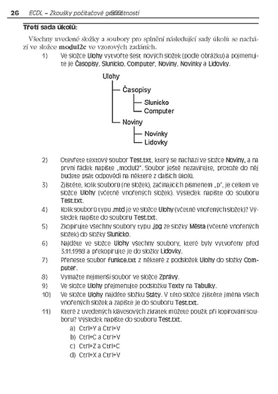 Kniha vás formou řešených otázek provede přípravou na testy všech sedmi modulů, ukáže vám nejčastější chyby a způsob, jakým se výsledky hodnotí. Autorka této knihy je školitelkou a zároveň testerkou ECDL. Díky jejím zkušenostem jsou jednotlivé sady testů vytvořeny tak, aby svým počtem otázek i rozsahem doprovodných souborů přesně kopírovaly skutečné zkoušky. Navíc vám kniha umožní vypracovat si testy nanečisto a zjistit, jak byste u případných zkoušek uspěli.