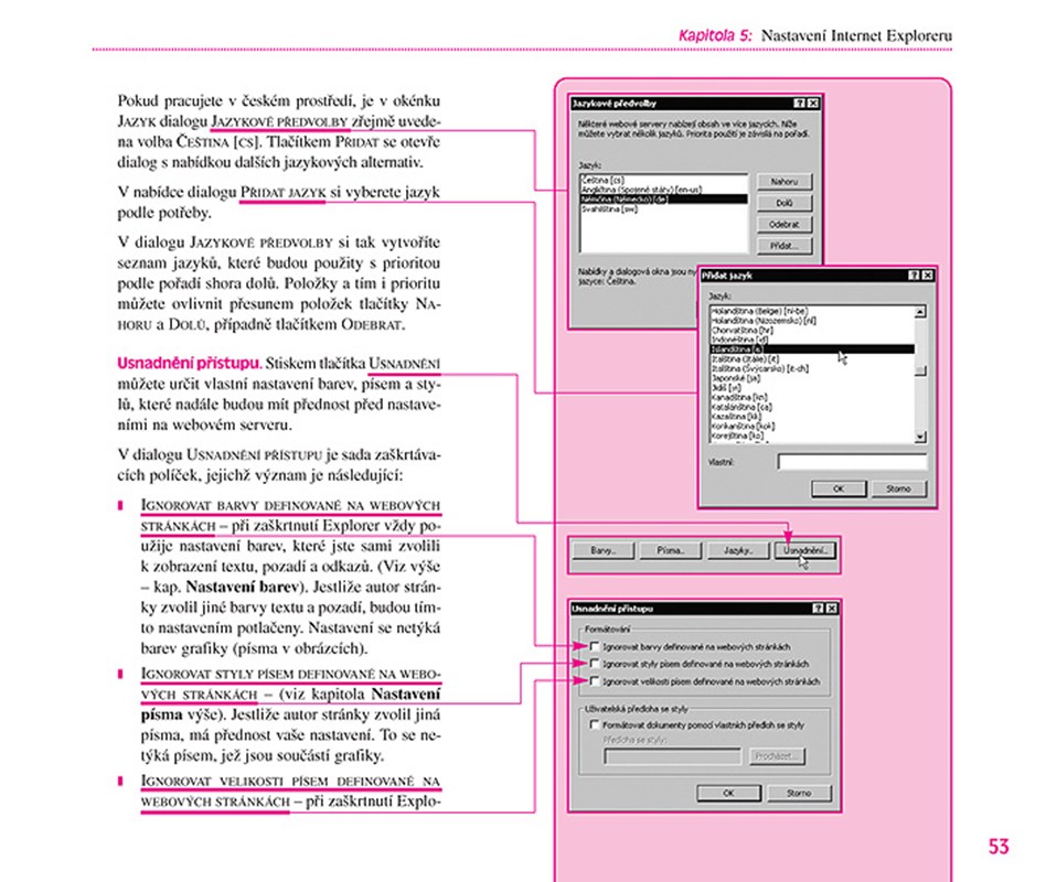 2. Hypertextové odkazy. Znáte z Internetu, ale poprvé jsme je aplikovali v knize: od probírané činnosti vede „hypertextový odkaz“ směrem k příslušnému elementu v obrázku; nebo, chcete-li, od probírané činnosti v obrázku vede odkaz k vysvětlujícímu textu.