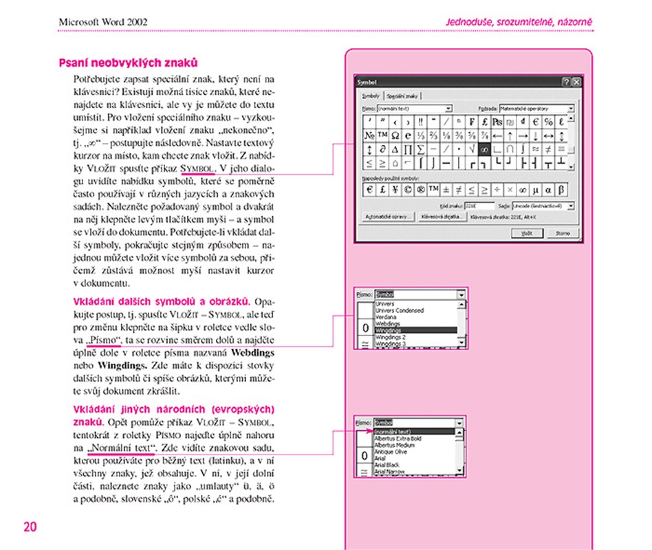 Všechna důležitá témata. V této příručce se naučíte vše podstatné, co budete k ovládání a efektivnímu využití Wordu 2002 potřebovat: