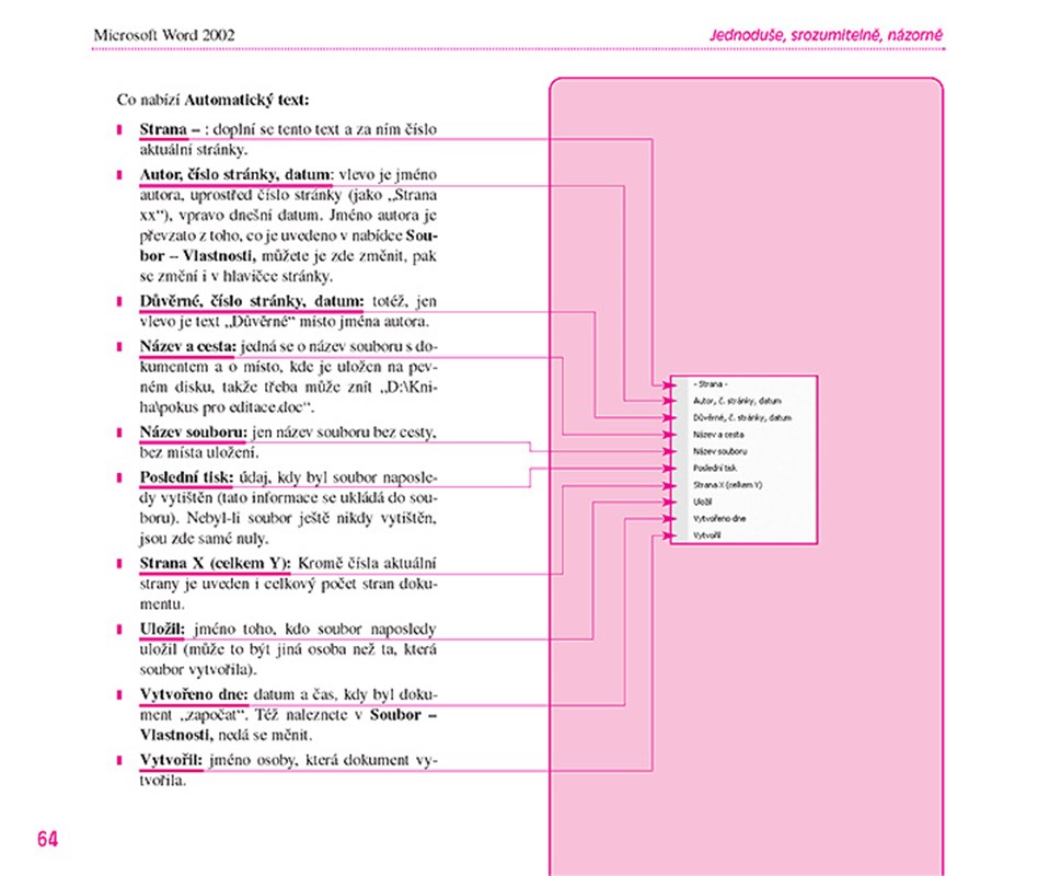 Hypertextové odkazy. Znáte z Internetu, ale poprvé jsme je aplikovali v knize: od probírané činnosti vede „hypertextový odkaz“ směrem k příslušnému elementu v obrázku; nebo, chcete-li, od probírané činnosti v obrázku vede odkaz k vysvětlujícímu textu.