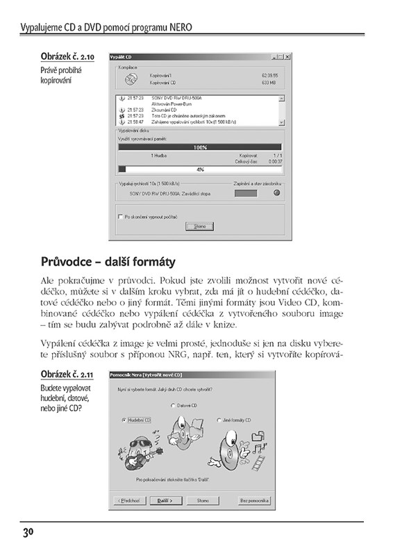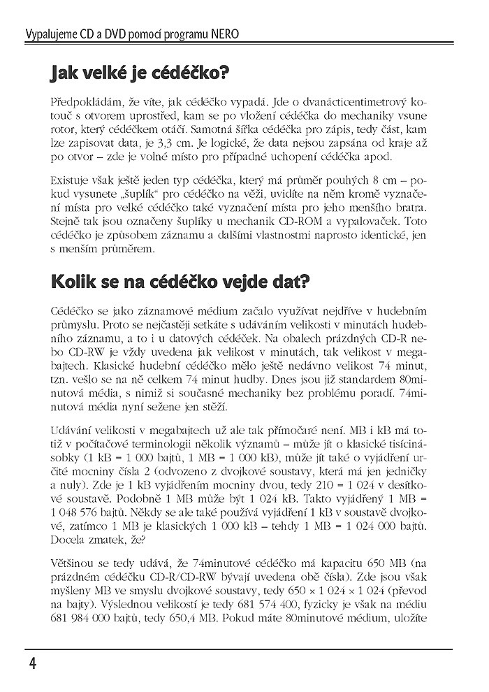 K vypalování potřebujete patřičný program – na trhu jich existuje několik. Proč při psaní této knihy padla volba právě na Nero Burning Rom, je jasné: Nero je v současné době nejlepším vypalovacím programem, patří mezi uživateli k nejvíce rozšířeným, a co je důležité, nabízí i českou lokalizaci. Obsahuje však řadu možností, jejichž zvládnutí není zrovna jednoduché. A právě proto byla vydána tato kniha. Pomůže vám „vyrábět“ datová cédéčka a dévédéčka, audiocédéčka, videocédéčka, kopírovat, vypalovat DVD-Video, pracovat s CD a DVD jako s disketou či vytvářet bootovací média.
