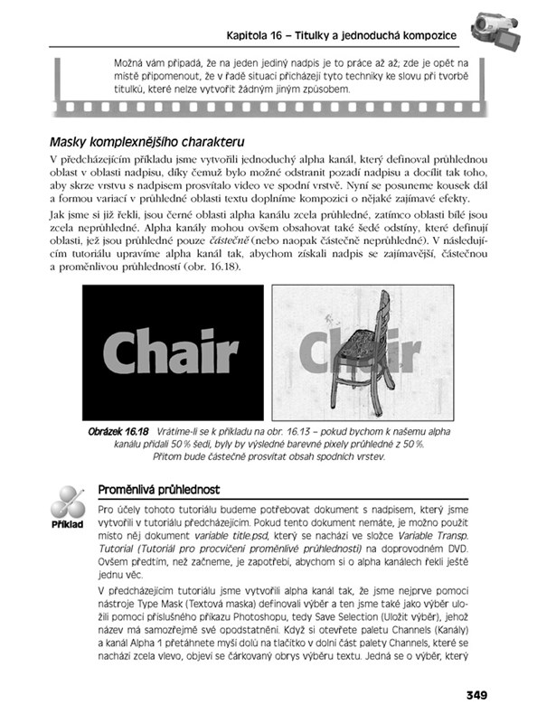 Další texty o tvorbě scénářů a plánování výroby filmu, videosekvence ke cvičením z knihy, zkušební verzi Adobe Premiere a After Effects.