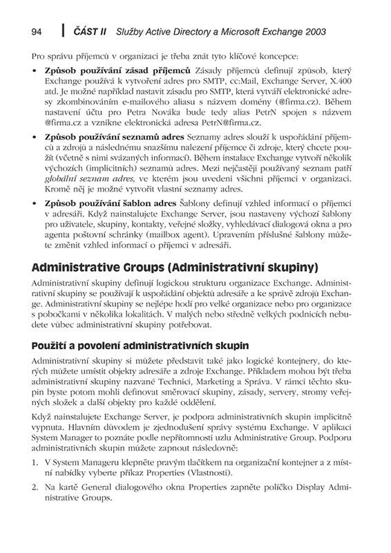 – Zabezpečení adresáře a zásady Exchange
