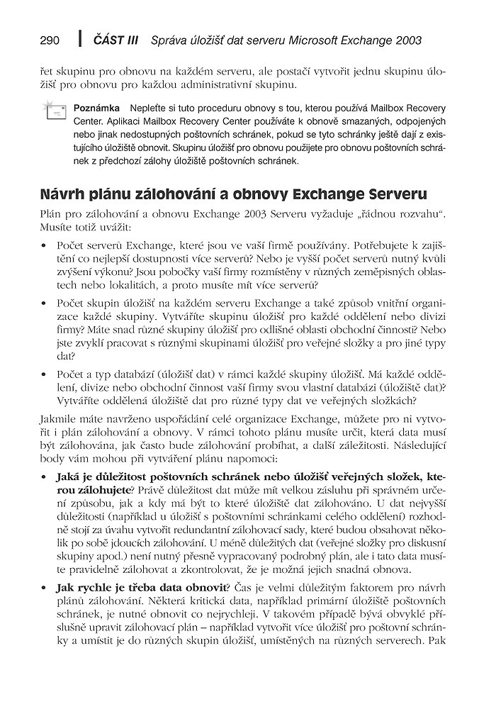 – Zálohování a obnova serveru Exchange 20032000