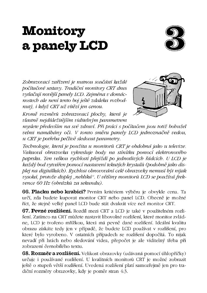 Kniha se zabývá jak stolními počítači, tak i dnes stále populárnějšími notebooky a komponentami těchto sestav od skříní, základních desek, procesorů, pevných disků a pamětí přes grafické, zvukové, televizní a další přídavné karty až po periferie: monitory, tiskárny, skenery, klávesnice a myši, záložní zdroje, reproduktory, sluchátka a mikrofony či herní zařízení.