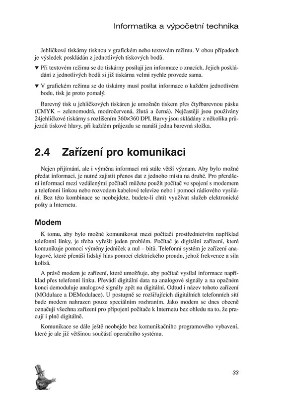 Po zvládnutí publikace by měl každý student či jiný zájemce o knihu mít velmi dobrý přehled, znalosti i schopnosti ovládání moderní výpočetní techniky a měl by být z této výchozí pozice schopen velmi snadno zdolat další laťky, ať se jedná o konkrétní aplikační programy, práci se sítěmi a Internetem nebo programování.