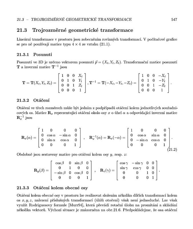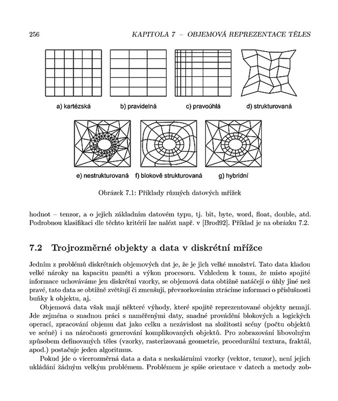 Kniha je rozdělena do pěti částí. První je věnována rovinné (2D) grafice - zabývá se popisem objektů definovaných v rovině, jejich rasterizací a úpravami vzniklého obrazu. Další tři části jsou zaměřeny na prostorovou (3D) grafiku. Nejprve jsou uvedeny metody popisu prostorových objektů, poté způsoby jejich zobrazování a nakonec techniky používané při animacích a v aplikacích v reálném čase. Poslední část knihy potěší programátory - obsahuje výběr matematických vzorců a nejčastěji používaných výpočetních postupů v počítačové grafice.