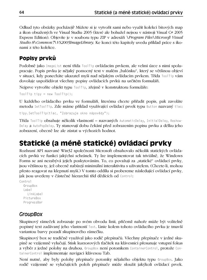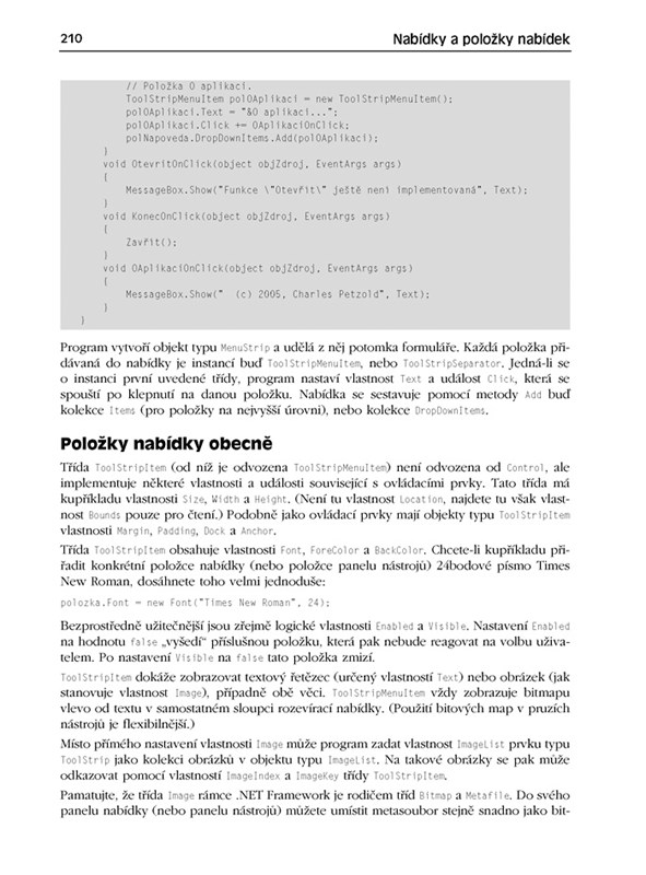 Výklad v knize využívá novinek .NET Framework 2.0 a Visual Studia 2005. Na přiloženém CD naleznete instalaci Microsoft Visual C# 2005 Express Edition, .NET Framework 2.0 a kompletně lokalizované kódy.