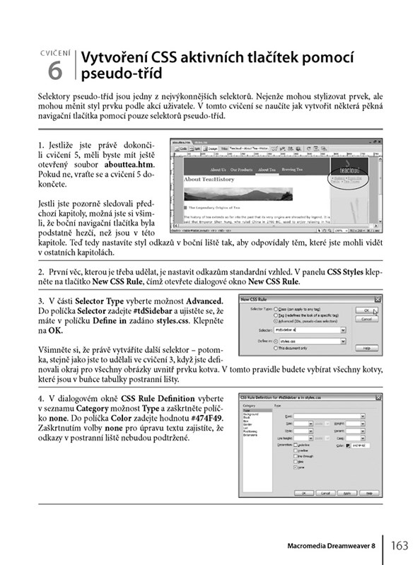 Kniha je založena na praktických příkladech doprovázených nezbytným minimem teorie a osvědčenými tipy. Naučíte se vytvořit strukturu webu, navrhnout layout stránek pomocí CSS, používat tabulky, pracovat se šablonami a formuláři. Opomenuta není ani práce s novými funkcemi. Pokud se učíte rádi přímo na příkladech, které nejsou vyumělkované, oceníte svěží přístup této knihy na více než 90 tutoriálech.