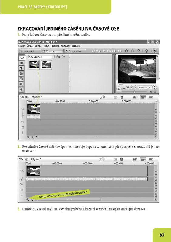 - editovat video, pracovat s jednotlivými záběry, vytvářet klipy,