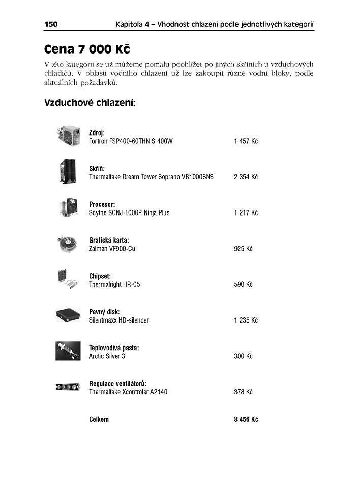 V poslední části knihy pro vás pak autor našel a zkompletoval ucelené systémy chlazení celého počítače, a to v různých cenových hladinách. Zajímá vás, jak uchladit celý počítač za 500 Kč, za 3 500 Kč, nebo třeba za 10 000 Kč? Nebo si zkusíte složit opravdovou sestavu snů?