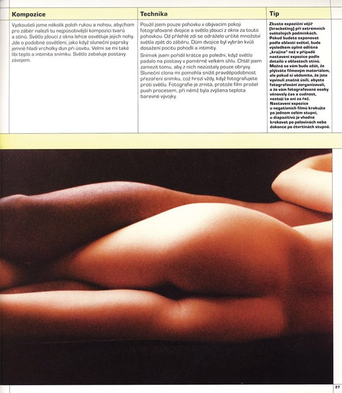 V knize Fotografujeme akty naleznete na pěkných snímcích od různých autorů zastoupeny všechny významné žánry z této oblasti fotografie. Akt ženský i mužský, komerční, umělecký nebo erotický, akt pojatý klasicky, abstraktně nebo experimentálně.
