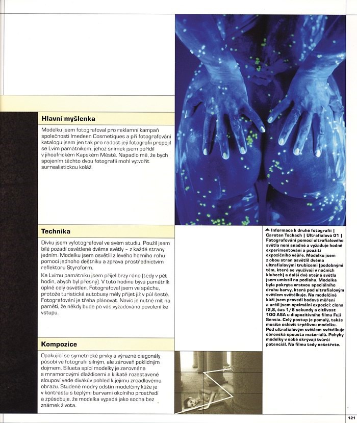 Publikace není jen pěknou podívanou pro oči, díky své struktuře vám nabídne i mnoho inspirace pro vlastní tvorbu. Text, který doprovází fotografie, se zabývá zvoleným přístupem, rozebírá kompozici snímku i použitou techniku, vše je doprovázeno tipy pro fotografování, technickými údaji a osobními postřehy autorů.