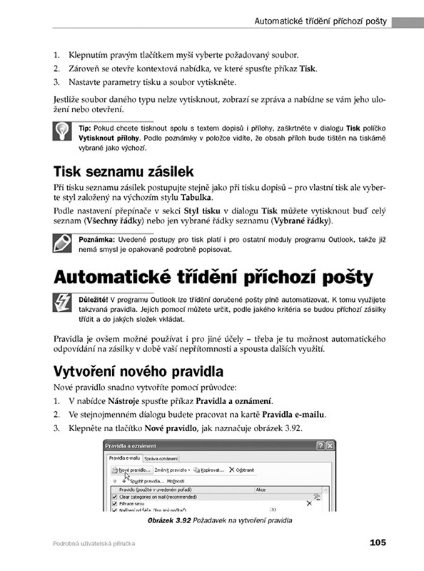 - Třídění a vyhledávání pošty, příznaky, automatické podpisy