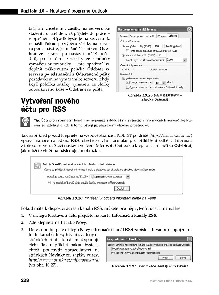 - Podrobné nastavení Outlooku a účtů elektronické pošty či informačních kanálů RSS