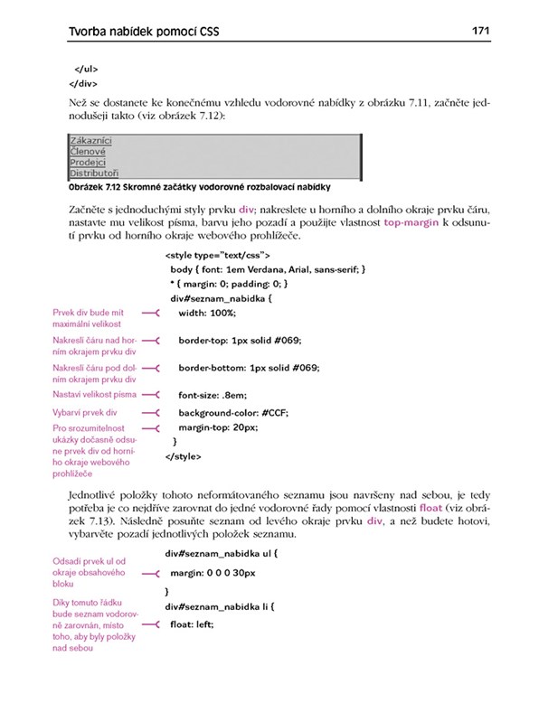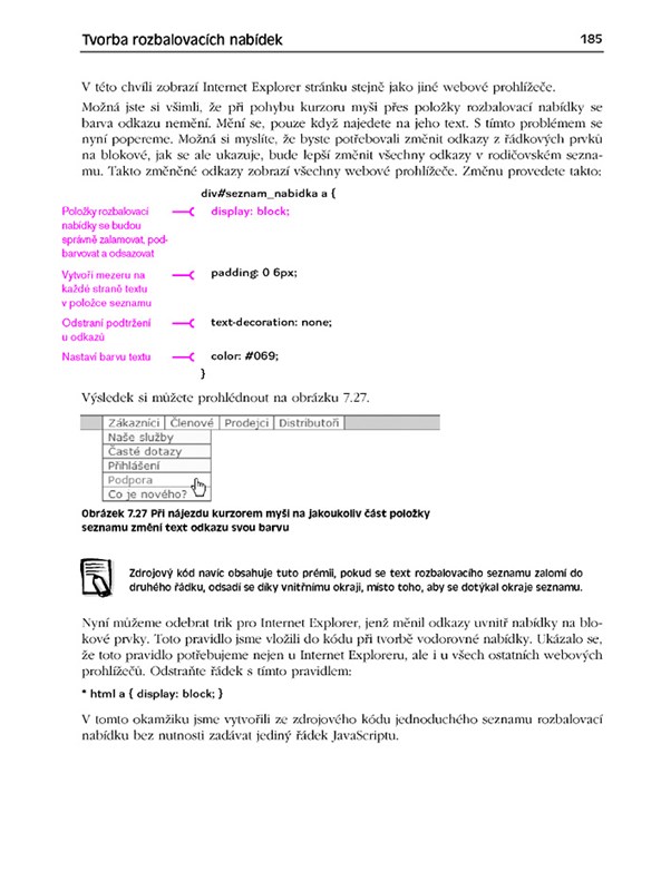 - Tvorba klasických i rozbalovacích víceúrovňových nabídek pomocí CSS